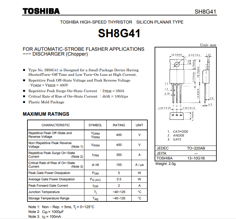 SH8G41 SCR HIGH-SPEED 400V 2A TO-220 แท้