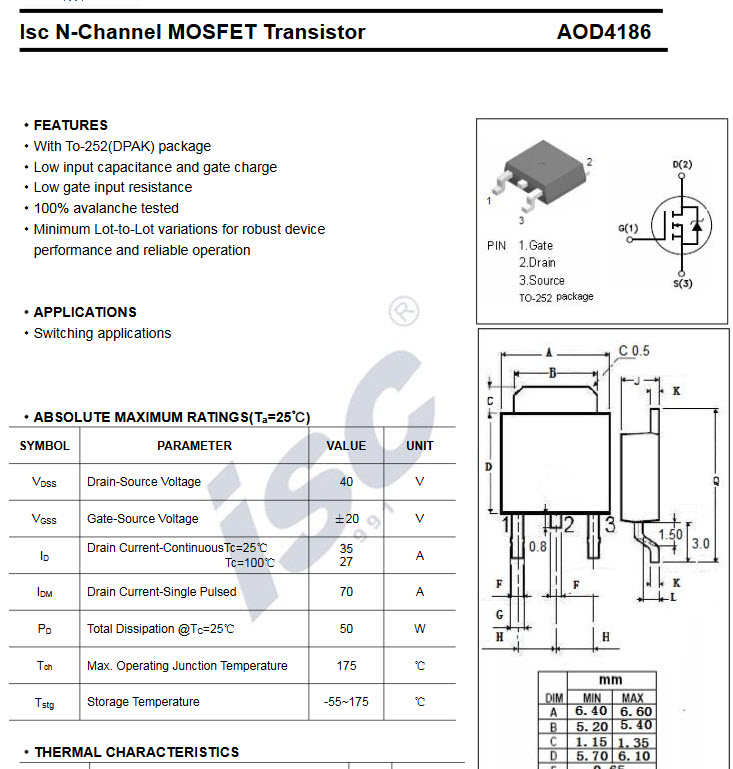 AOD4186 D4186 Mosfet N 40v 35A TO-252
